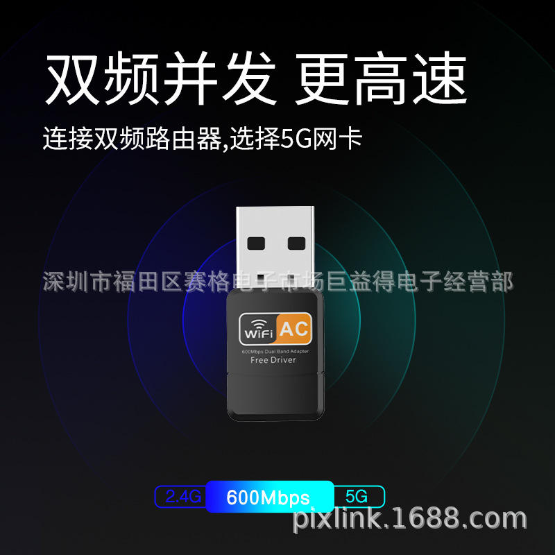 AC600M无线网卡免驱动台式电脑WIFI接收器5G双频USB随身WIFI批发