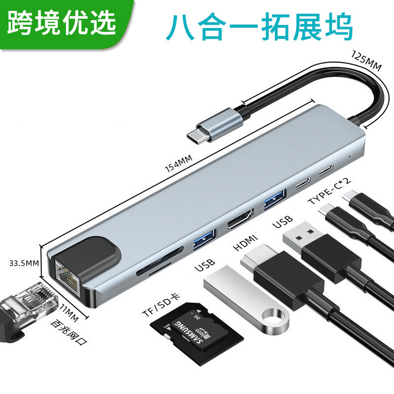 集线器type c hub usb3.0 转换同屏 网卡 笔记本八合一扩展坞