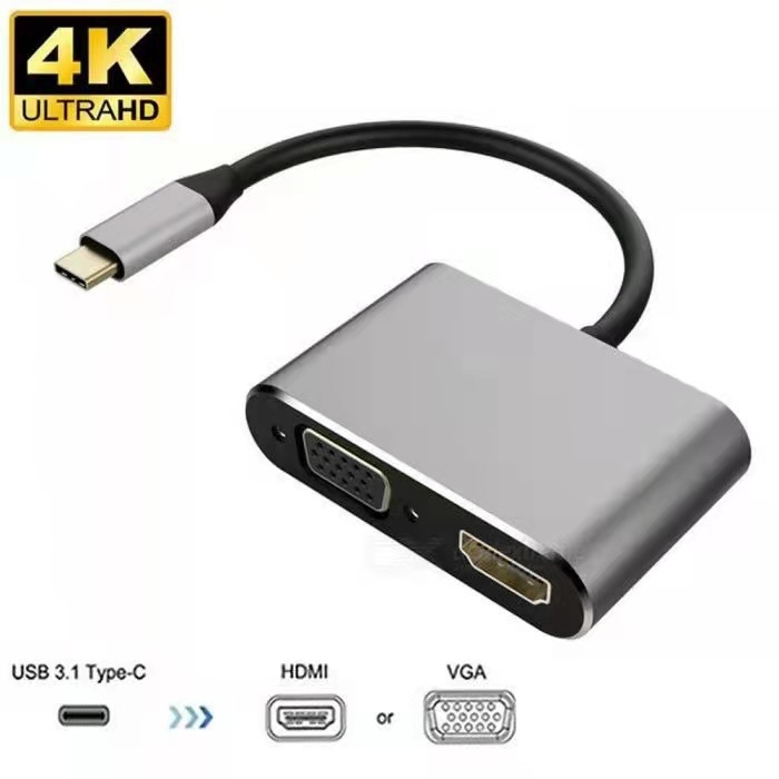 TYPE-C转HDMI/VGA 4K@60HZ高清转换器 电脑分屏器 二合一同屏器