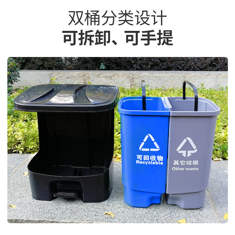 尺寸20L 【蓝/不可回收物-灰/其他垃圾】(320*305*430mm),25L 【蓝/不可回收物-灰/其他垃圾】 410*300*485MM,30L 【蓝/可回收物-灰/不可回收物】(450*340*460mm),35L【蓝/不可回收物-灰/其他垃圾】( 460*350*570mm)