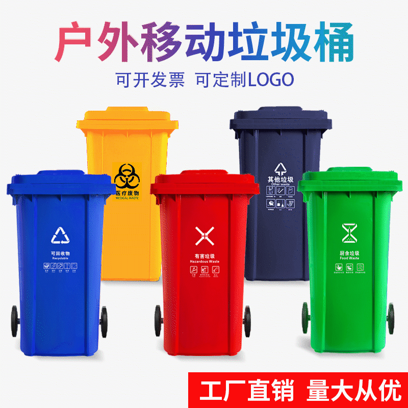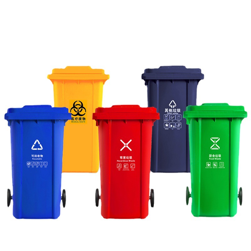 颜色绿色/厨余垃圾,蓝色/可回收物,红色/有害垃圾,炭灰色/其他垃圾,黄色/医疗废物