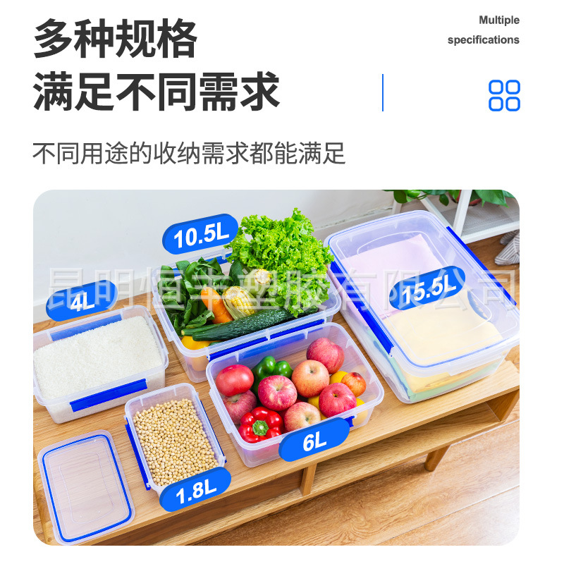 规格1.8L【密封加厚】5831(尺寸:220*150*90mm),4L【密封加厚】5832(尺寸:280*195*110mm),6L【密封加厚】5833(尺寸:320*230*120mm),10.5L【密封加厚】5834(尺寸:380*270*140),15.5L【密封加厚】5835(尺寸:430*305*155mm),5836【加厚储物盒】(尺寸:360*250*135mm),5837【加厚储物盒】(尺寸:420*300*155mm),5838【加厚储物盒】(尺寸:315*210*125mm),5815储物箱(250*175*85mm),5816储物箱(280*200*100mm),5817储物箱(320*220*110mm),5818储物箱(365*260*120mm),5819储物箱(395*290*135mm),5820储物箱(440*320*150mm)