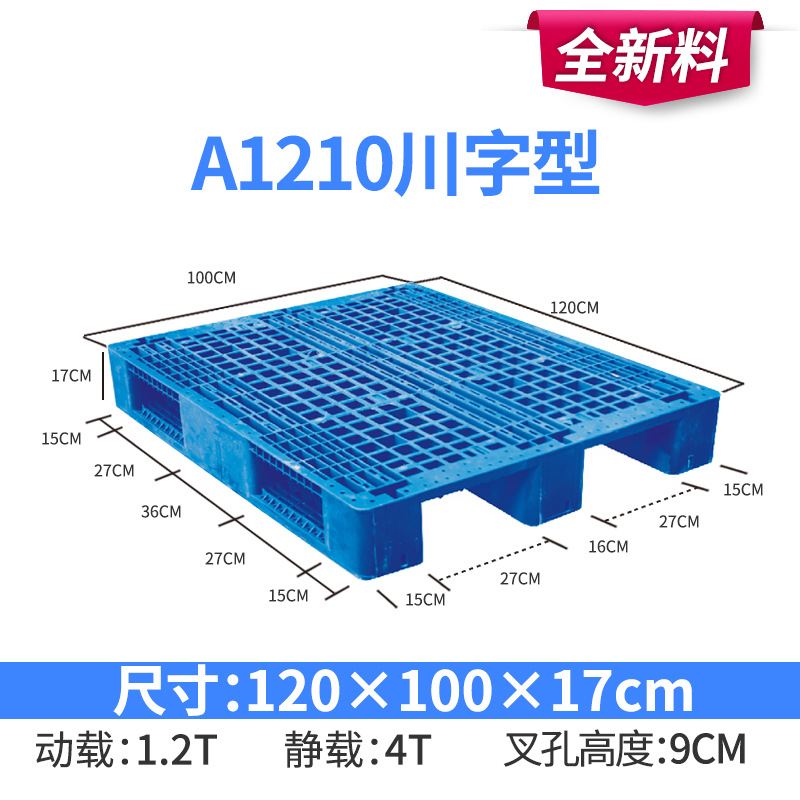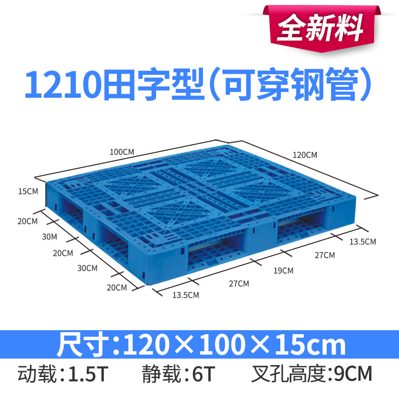 颜色1210网格九脚托盘-新料,1210九脚平面托盘-新料,1210网格川字托盘(可穿钢管)-新料,加厚1210网格川字托盘-新料,1210网格田字托盘(可穿钢管)-新料,1210平面川字托盘(可穿钢管)-新料,1210元孔托盘-新料,1006防潮垫板(600*300*30mm),1007防潮垫板(900*300*30mm),1008防潮垫板(1000*600*50mm)