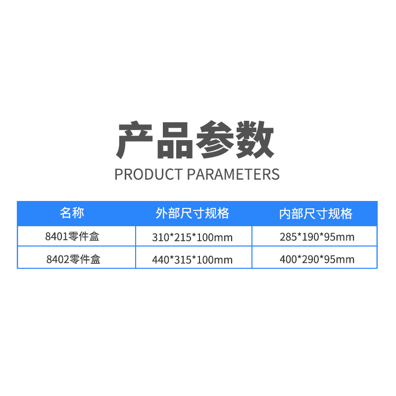 规格1#零件盒(8401)【310*215*100mm】,2#零件盒(8402)【440*315*100mm】