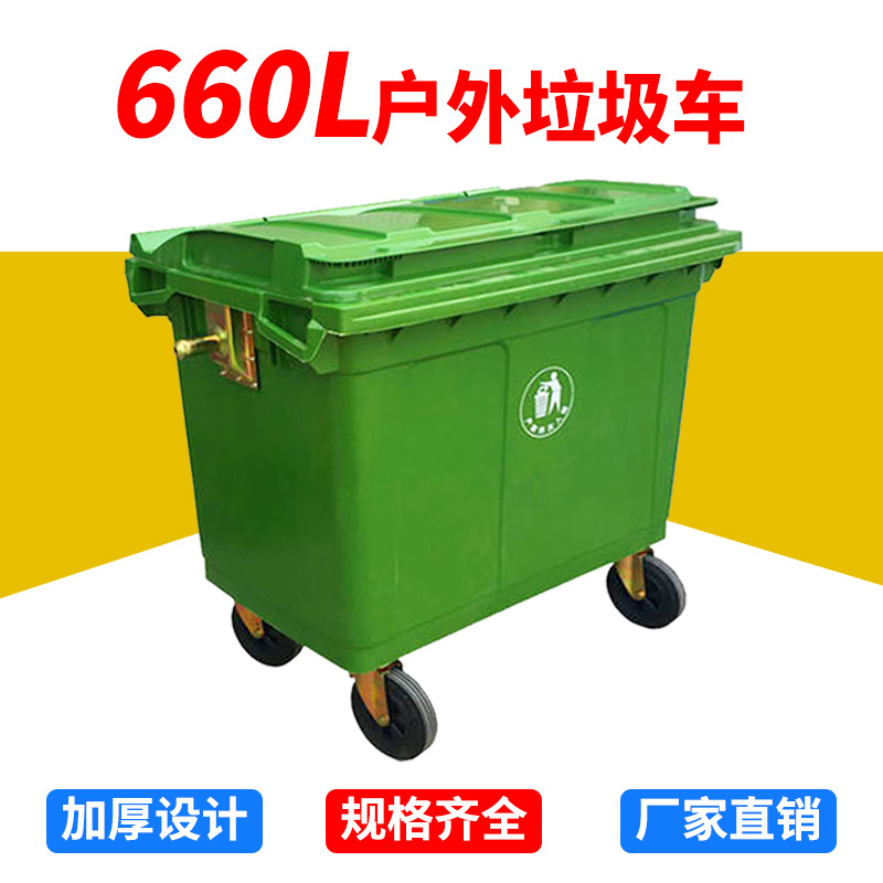660L手推垃圾车大号保洁环卫推车大容量户外塑料移动垃圾桶四分类