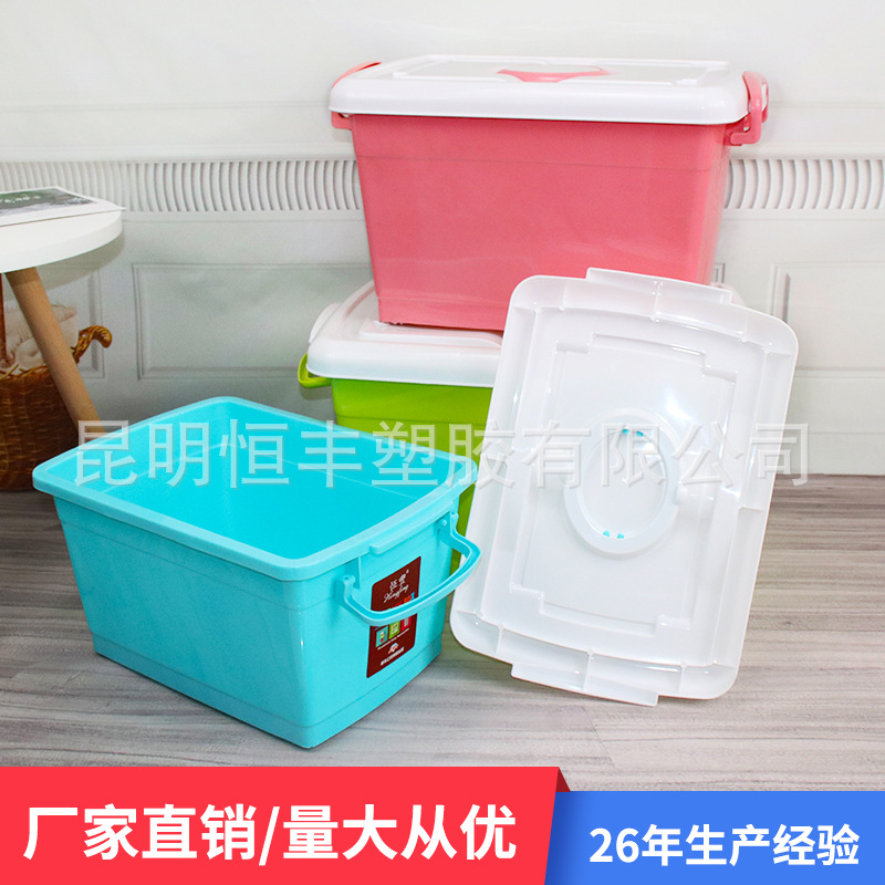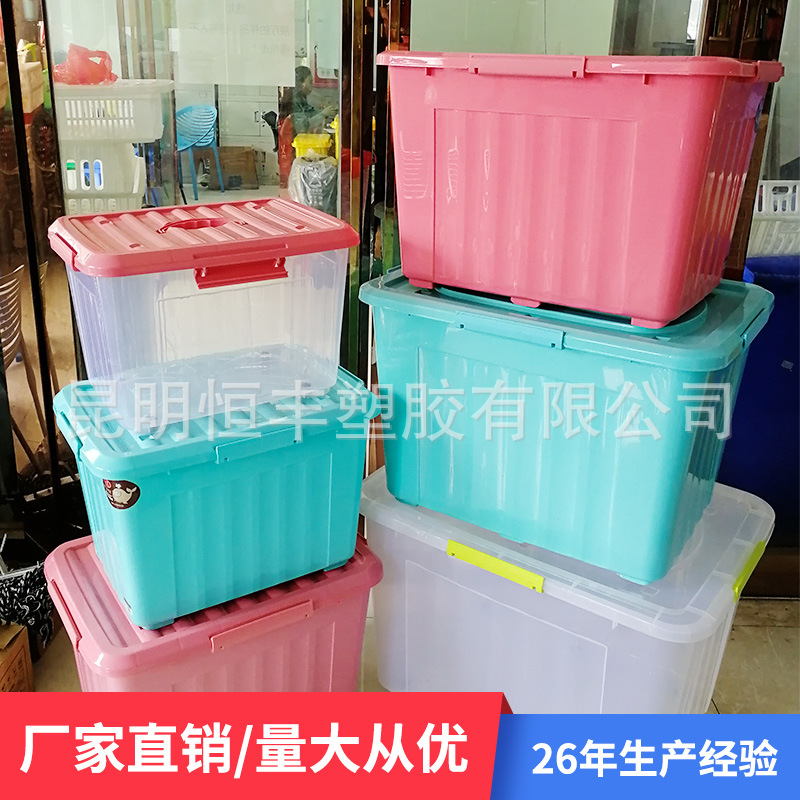 恒丰 塑料收纳箱特大号加厚手提带轮学生衣服收纳储物箱 厂家批发