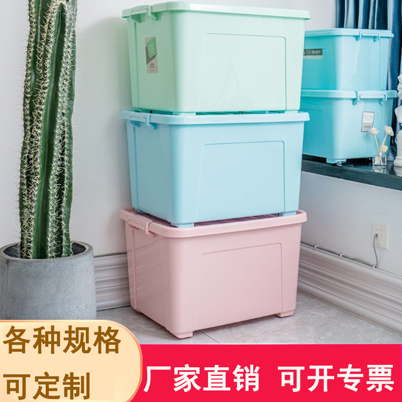加厚塑料收纳箱批发四轮大容量家用储物箱收纳盒衣物棉被整理箱