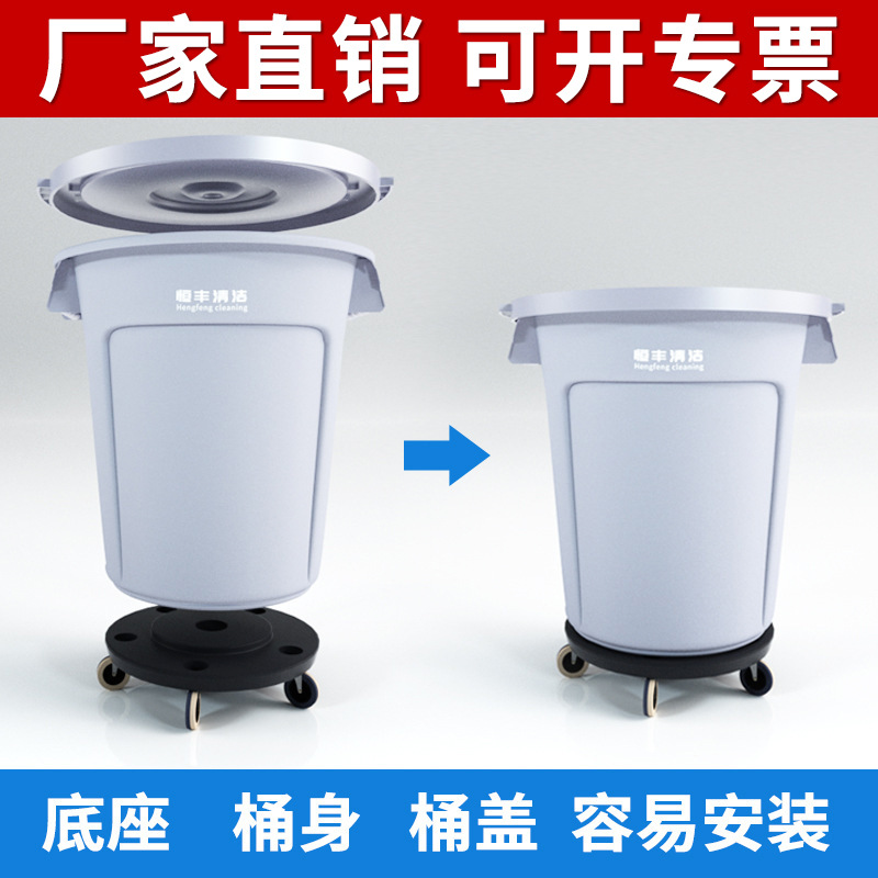 加厚圆形塑料垃圾桶商用带盖带轮大号储水高铁机场酒店清洁桶批发