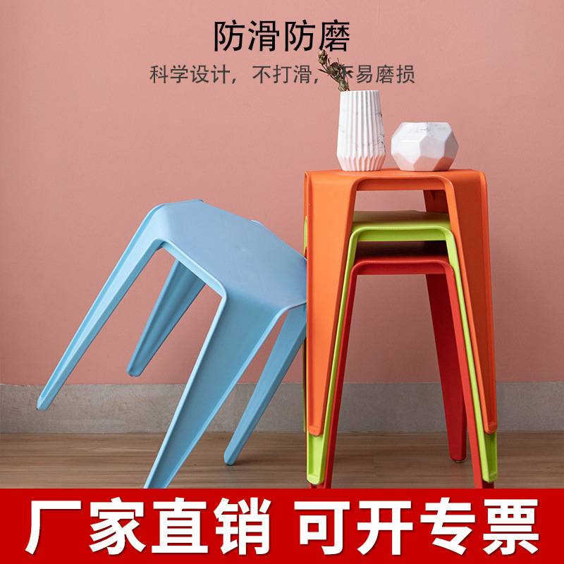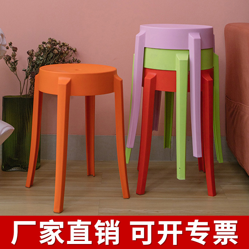 厂家直销北欧加厚塑料凳子吃饭家用客厅凳叠放餐厅高脚板凳圆凳子