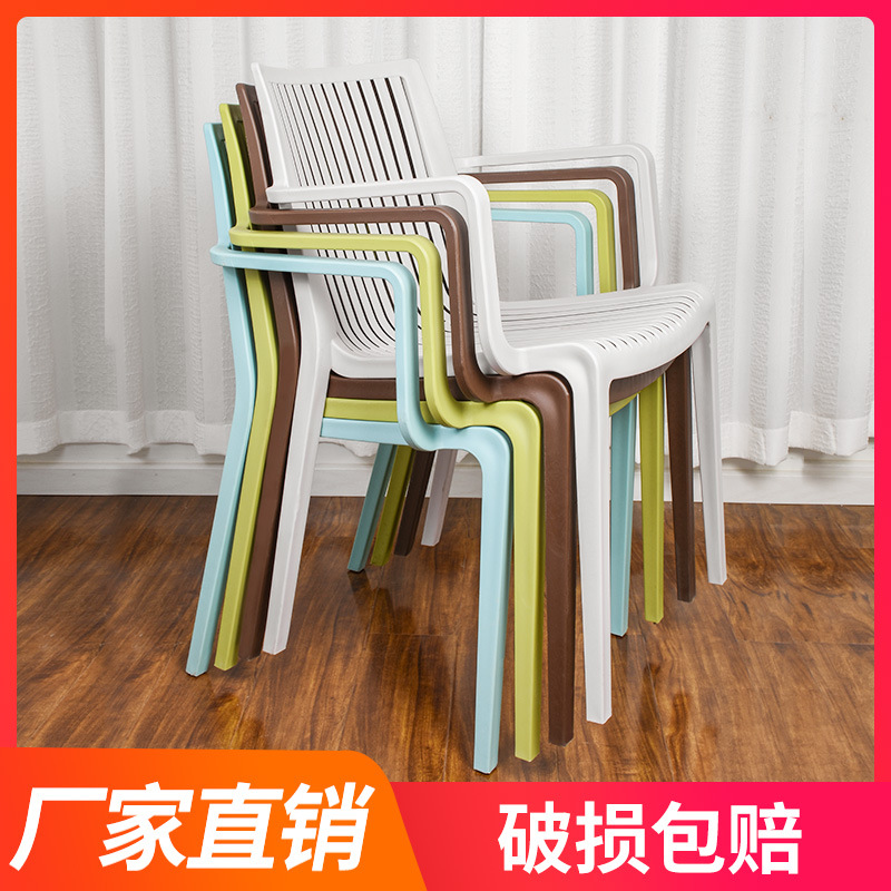 厂家批发休闲塑料椅子家用扶手靠背椅成人加厚餐椅餐桌椅咖啡厅