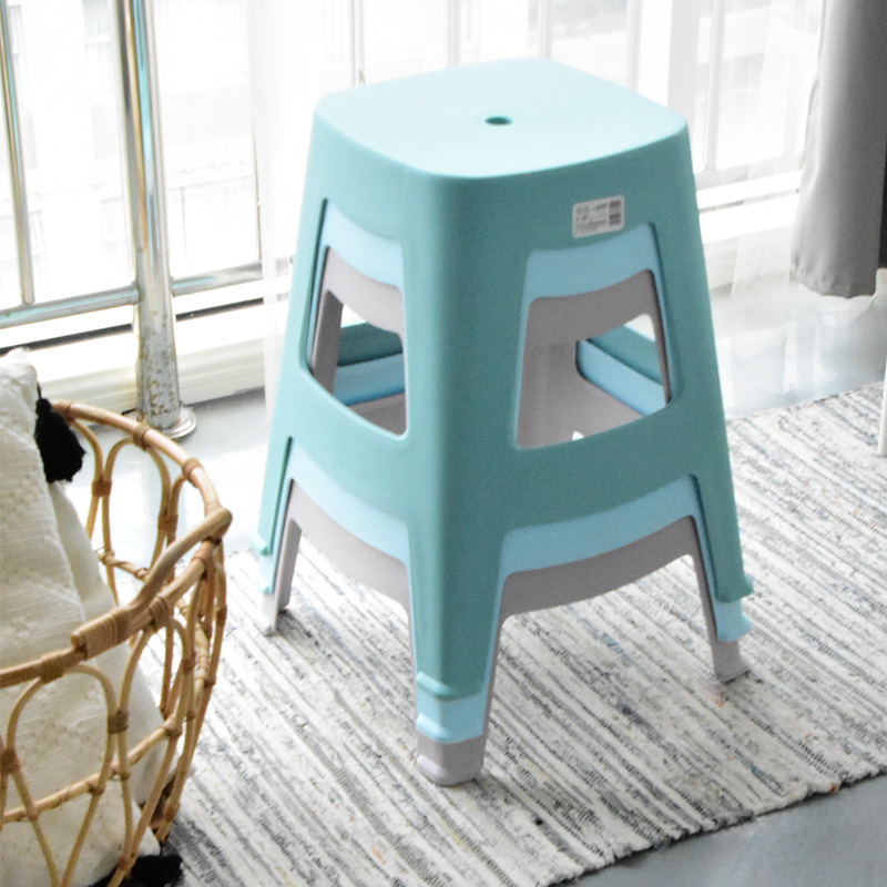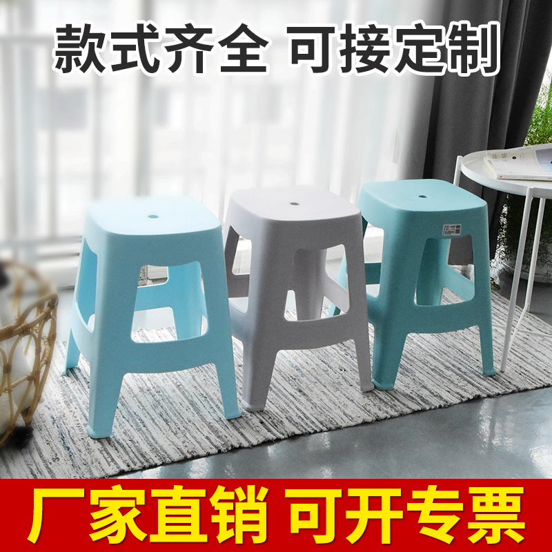 工厂定制颜色LOGO图案塑料凳加厚家用叠放餐桌椅子北欧胶凳方高凳