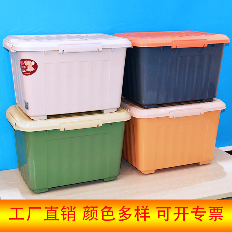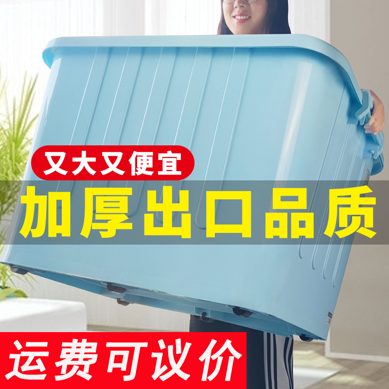 恒丰储物箱特大号手提带轮整理箱装衣服四面扣加厚周转箱工厂批发