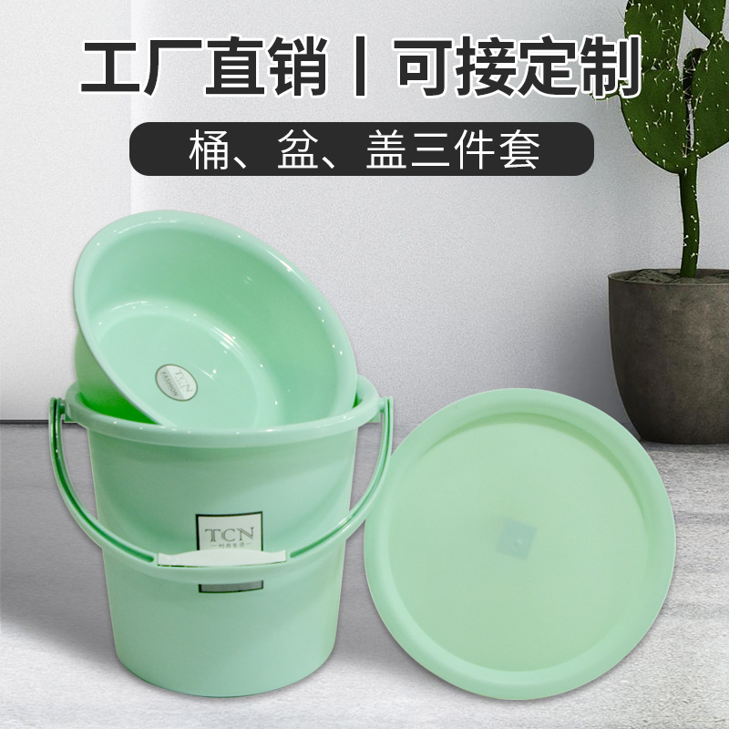 恒丰工厂直销手提水桶盆盖子三件套学校学生宿舍居家用洗脸盆批发