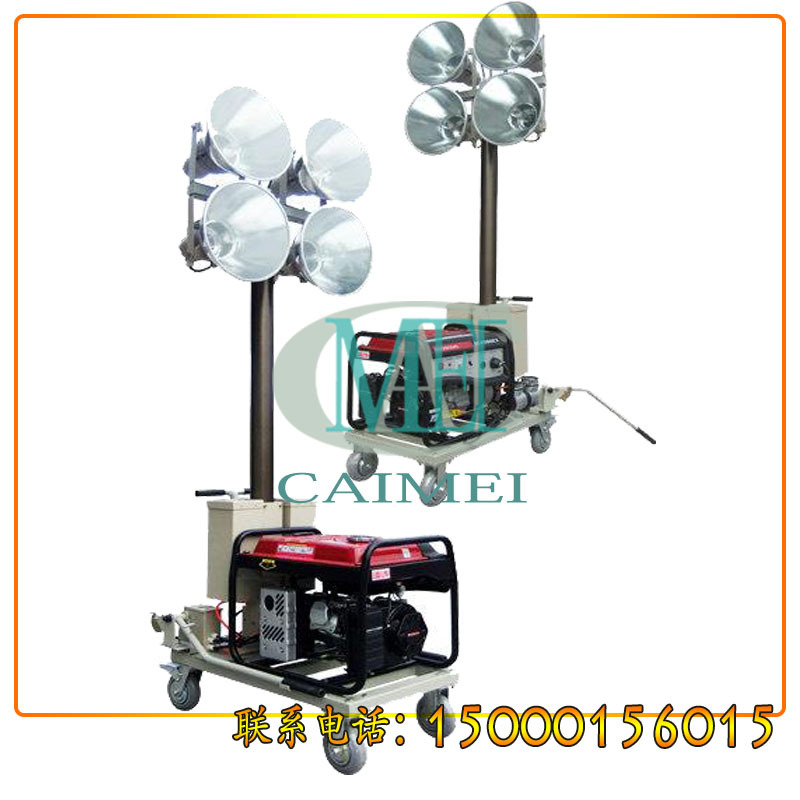 4. 狭窄的地方能可靠固定;灯具灯盘,气缸和发电机组为整体结构,发电机组底部装有万向轮并选配安装铁轨轮,可在坑洼不平的路面及铁轨上运行。