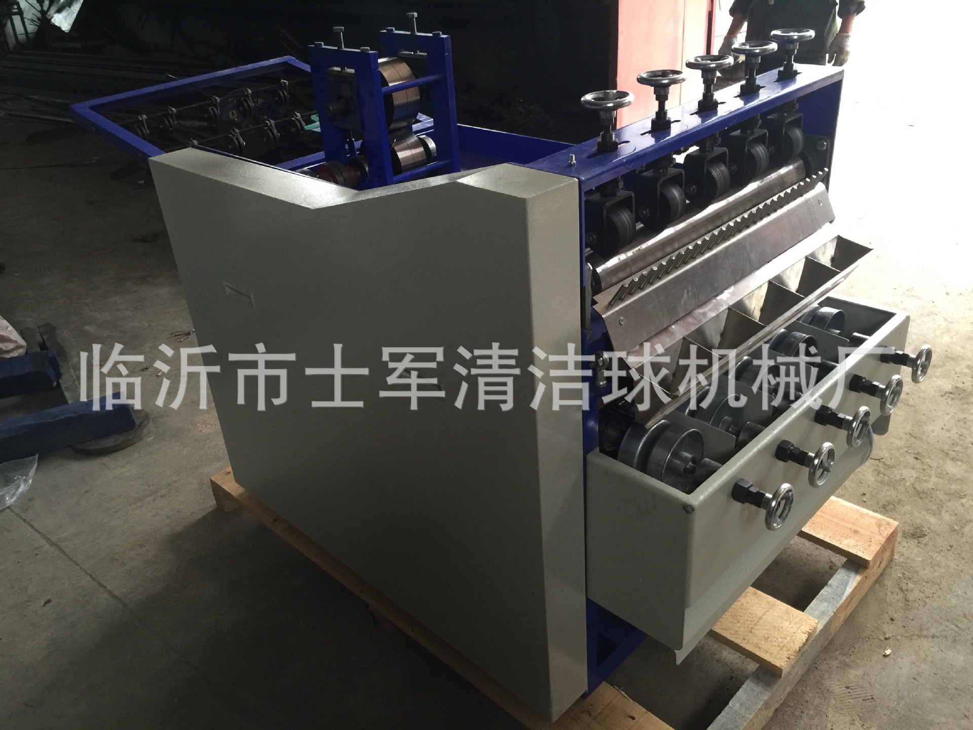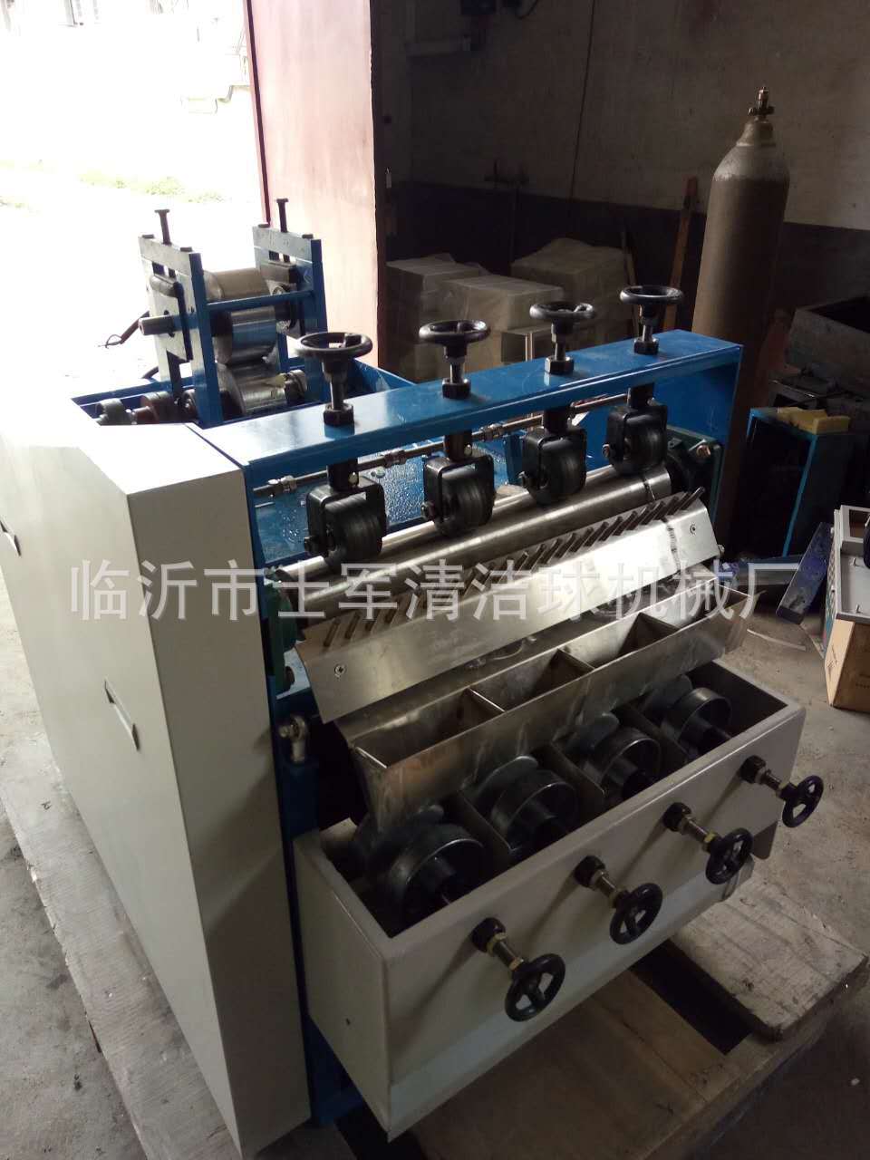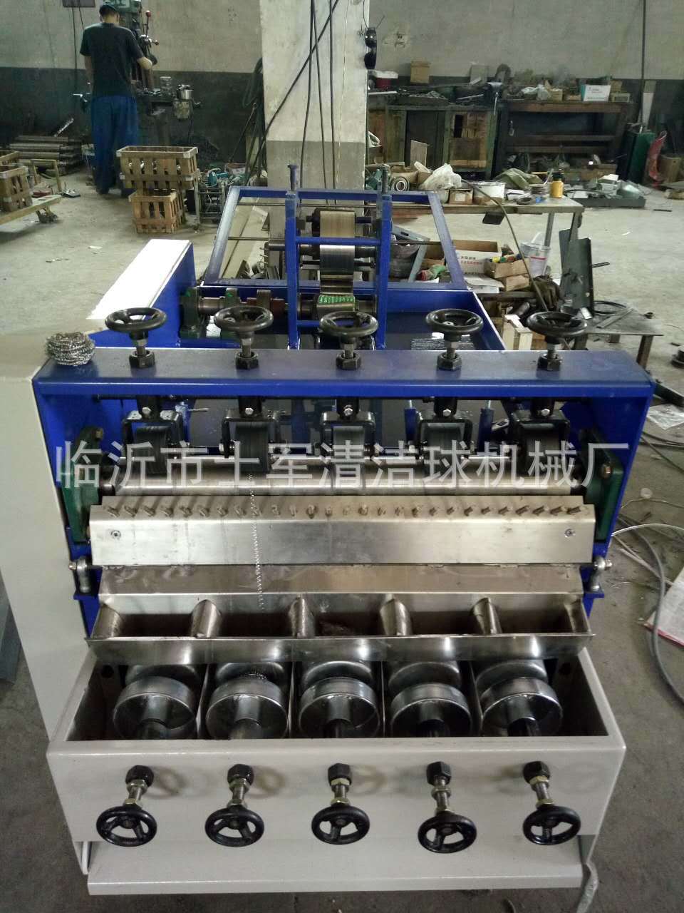 本厂位于山东省临沂市兰山区,此款机器是结合织网机器而制作的新一代全自动拧头机器,我们知道以往的网球机生产的网状清洁球需要工人的二次三次的手工制作,此款机器在生产过程中自动打卷、自动拧头,节省了大量人力和资金更加快了产品的生产制作,此款机型目前技术成熟,打卷、拧头成功率达到100%,机器采用PLC 机械自动化控制系统,确保了剪球、拧头的成功率和机械的配合稳定性。此款机器可以使用多种材料制作,钢丝、镀锌丝、镀铜丝、纯铜丝等材质。欢迎广大客户来厂参观! 销售电话:15192999444 郭经理