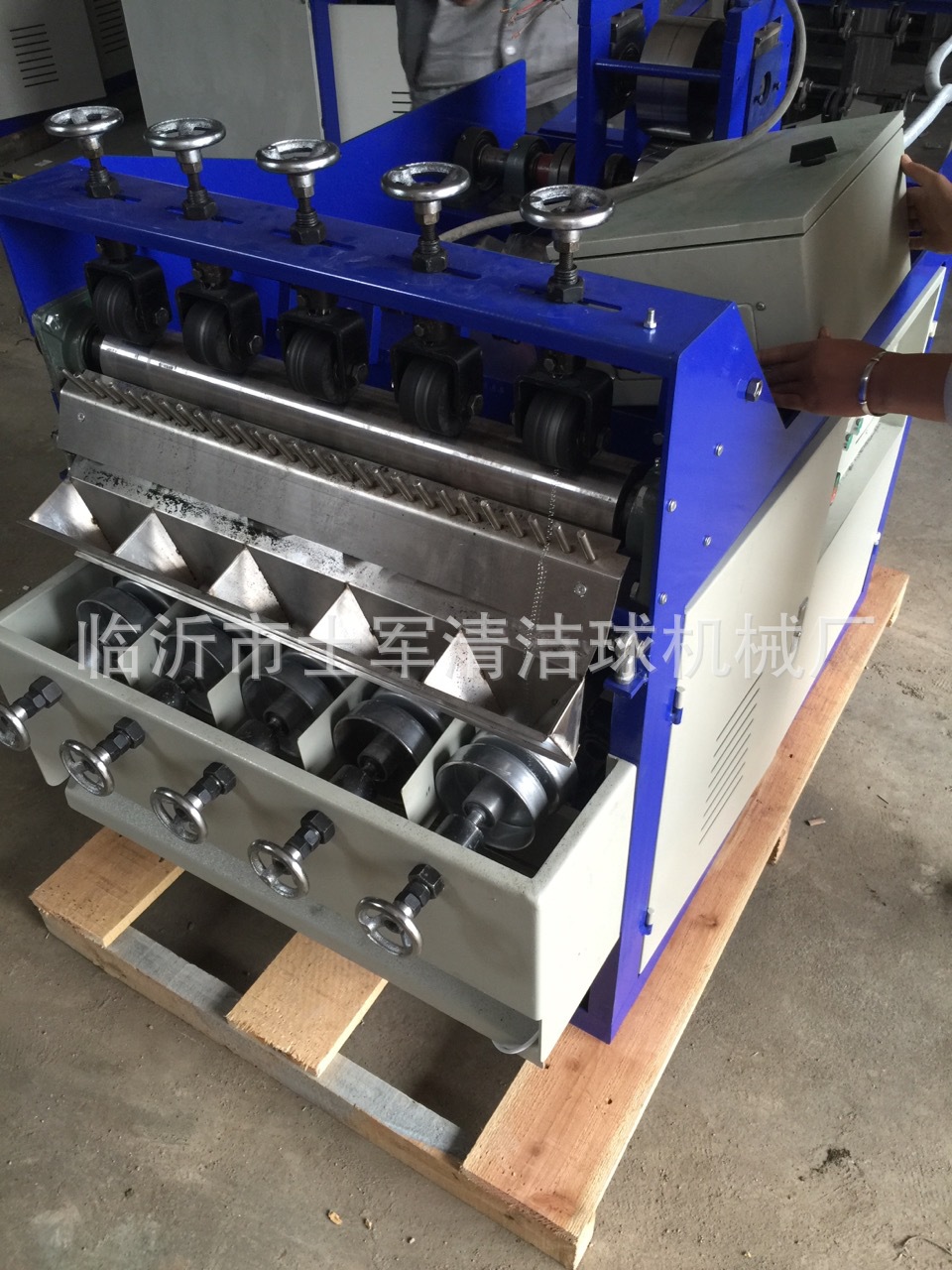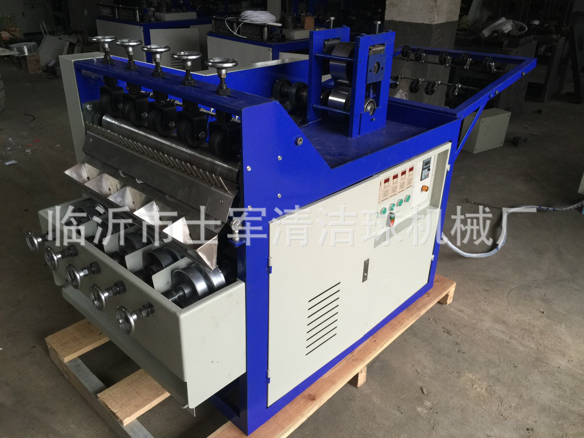 本厂位于山东省临沂市兰山区,此款机器是结合织网机器而制作的新一代全自动拧头机器,我们知道以往的网球机生产的网状清洁球需要工人的二次三次的手工制作,此款机器在生产过程中自动打卷、自动拧头,节省了大量人力和资金更加快了产品的生产制作,此款机型目前技术成熟,打卷、拧头成功率达到100%,机器采用PLC 机械自动化控制系统,确保了剪球、拧头的成功率和机械的配合稳定性。此款机器可以使用多种材料制作,钢丝、镀锌丝、镀铜丝、纯铜丝等材质。欢迎广大客户来厂参观! 销售电话:15192999444 郭经理