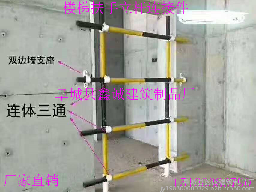 直三通:用于楼层、楼梯、道路两侧等工具化钢管防护栏杆的连接,应用非常广泛。