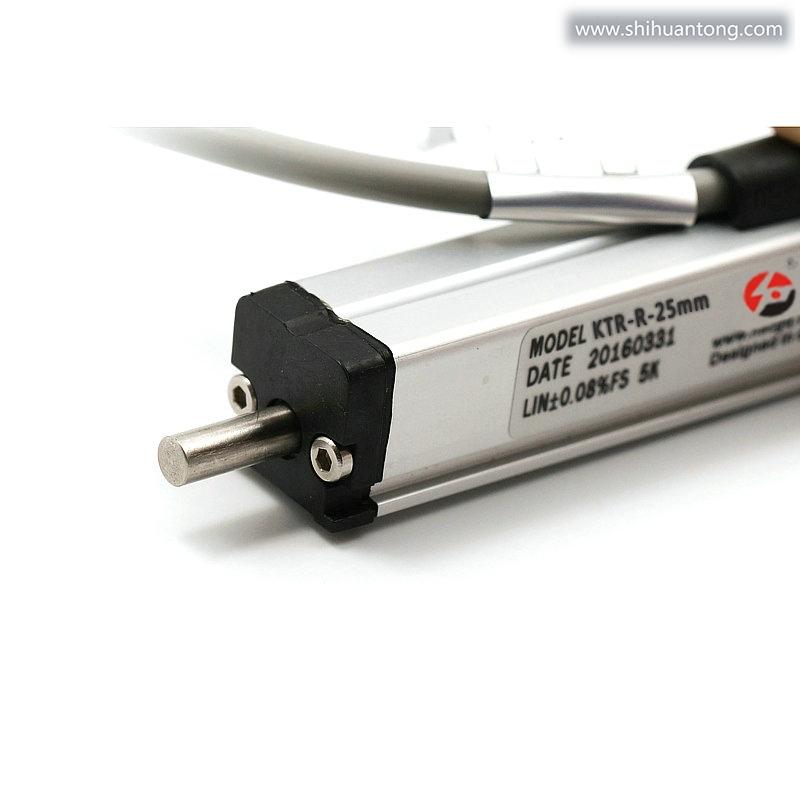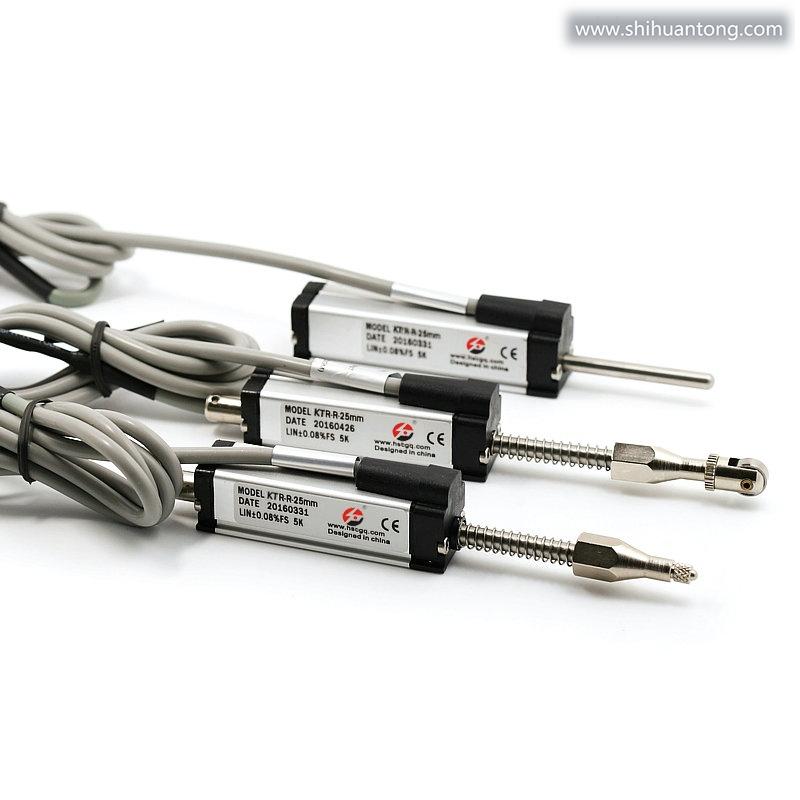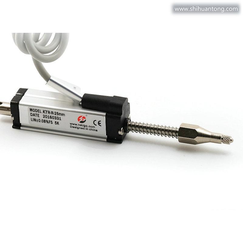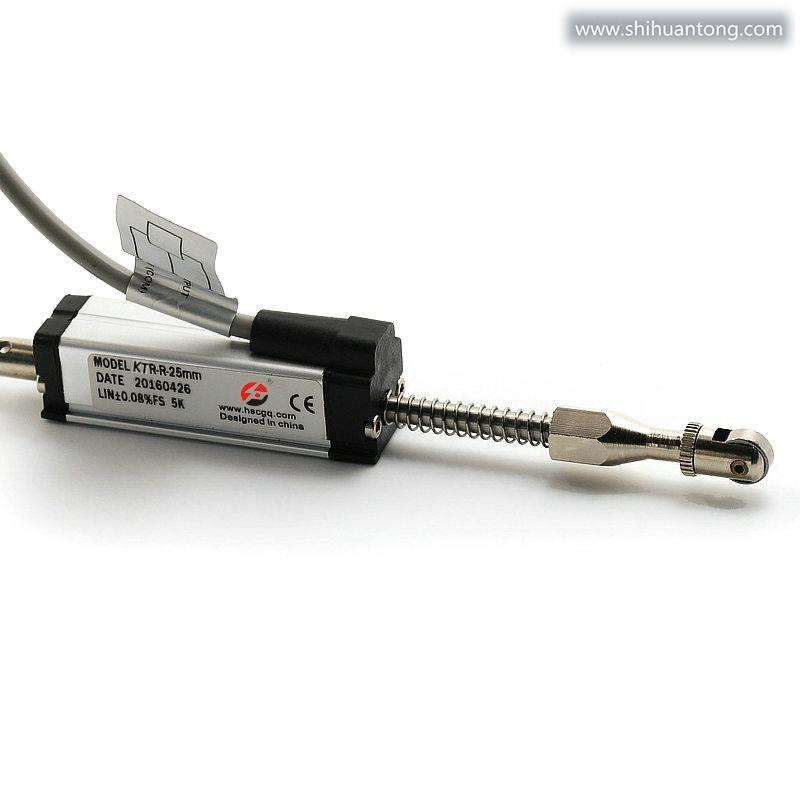微型自恢复直线位移传感器流延机轻工设备通用KTR微型自恢复系列直线位移传感器,有效行程5mm~100mm,两端均有2mm缓冲行程,、精度1%~0.15%FS。外壳表面阳极处理,防腐蚀;内置导电塑料测量单元,无温漂,寿命长;具有自动电气接地功能。密封等级为IP67,有直接出线和五芯插头插座输出两种选择,可以适用在大多数通用场合,特别适用于安装空间狭小的场合;顶推杆无需安装,无需对中,顶推角90±3°,允许顶推极限运动速度为3m/s.微型自恢复直线位移传感器流延机轻工设备