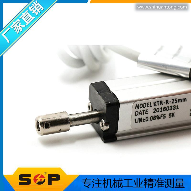 通用KTR微型自恢复系列直线位移传感器,有效行程5mm~100mm,两端均有2mm缓冲行程,、精度1%~0.15%FS。外壳表面阳极处理,防腐蚀;内置导电塑料测量单元,无温漂,寿命长;具有自动电气接地功能。密封等级为IP67,有直接出线和五芯插头插座输出两种选择,可以适用在大多数通用场合,特别适用于安装空间狭小的场合;顶推杆无需安装,无需对中,顶推角90±3°,允许顶推极限运动速度为3m/s.