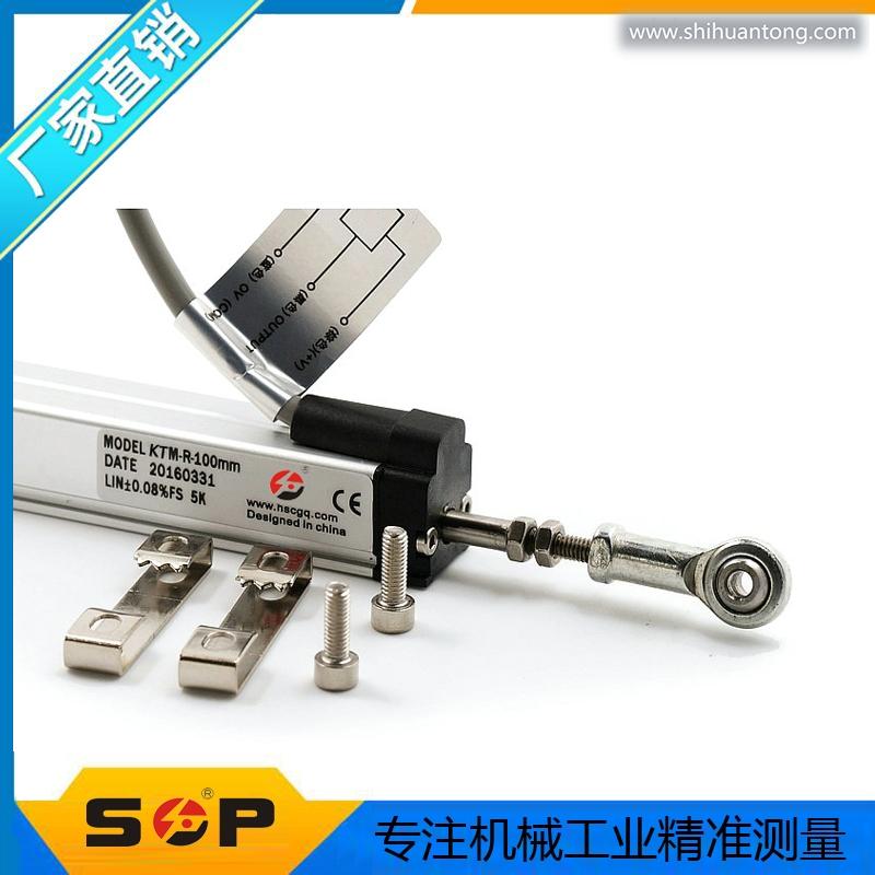SOP注塑机的顶针位移控制 KTM位移传感器通用KTM微型拉杆式直线位移传感器系列,有效行程10mm~300mm,两端均有2mm缓冲行程,精度0.3%~0.05%FS。外壳表面阳极处理,防腐蚀;内置导电塑料测量单元,无温漂,寿命长;具有自动电气接地功能。密封等级为IP67,有直接出线和五芯插头插座输出两种选择,可以适用在大多数通用场合,特别适用于安装空间狭小的场合;拉杆球头具有0.5mm自动对中的功能,允许极限运动速度可达到5m/s。