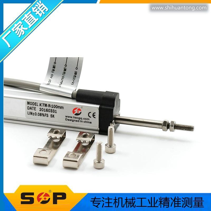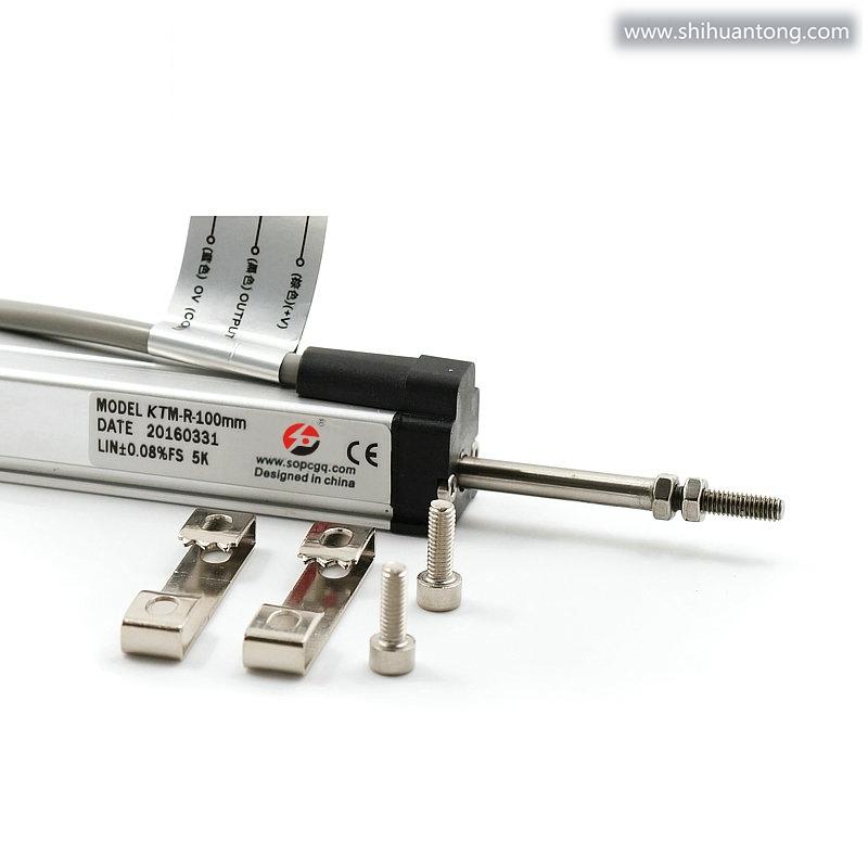 通用KTM微型拉杆式电子尺系列,有效行程10mm~300mm,两端均有2mm缓冲行程,精度0.3%~0.05%FS。