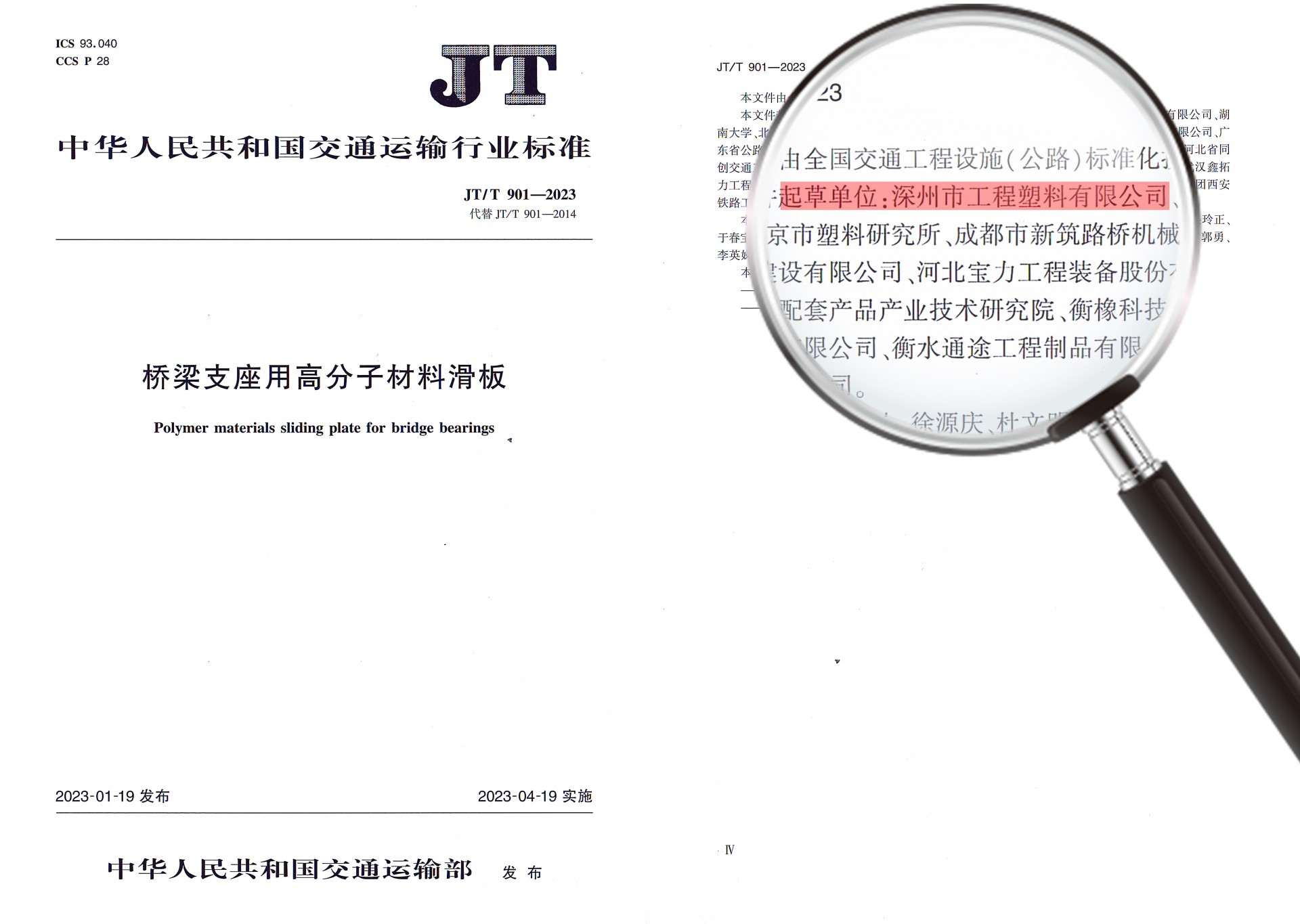 深州市工程塑料有限公司主持起草的交通运输行业标准《桥梁支座用高分子材料滑板》正式发布