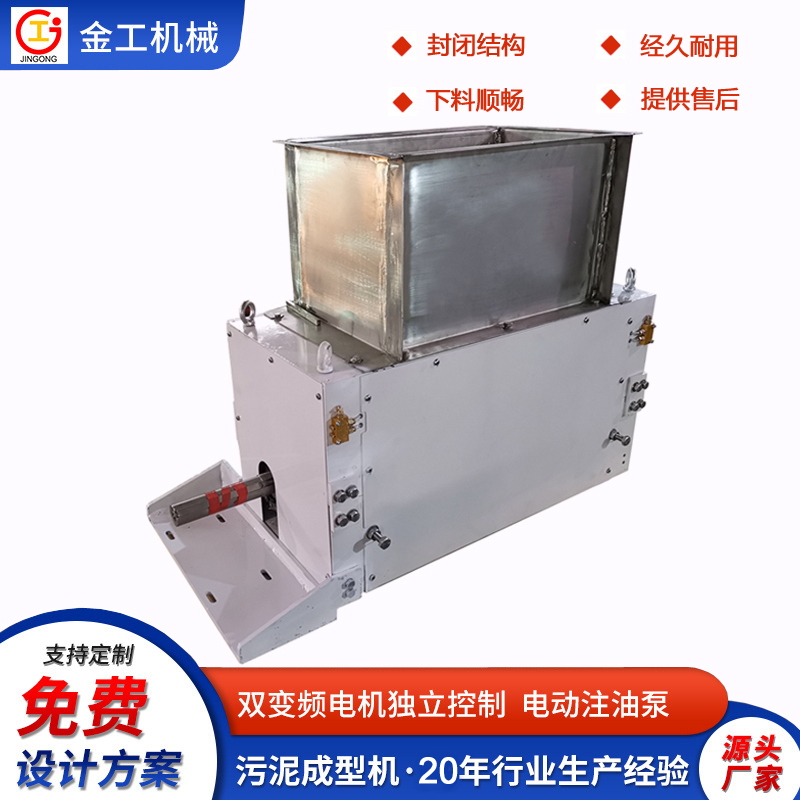 工作原理:是由两根方槽的刀轴互相啮合做相向运动,压滤过的污泥(含水率83%-45%)随着刀轴转动挤压在刀槽里形成方矩形,污泥随着刀轴转动由泥梳把它从刀槽铲刮出来,形成方条。