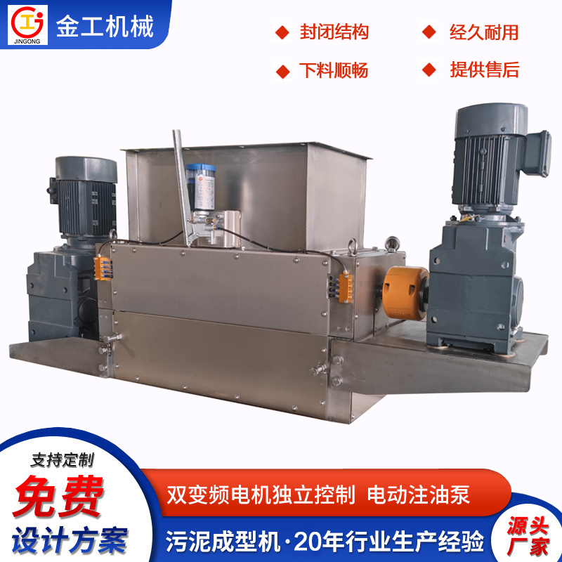 工作原理:是由两根方槽的刀轴互相啮合做相向运动,压滤过的污泥(含水率83%-45%)随着刀轴转动挤压在刀槽里形成方矩形,污泥随着刀轴转动由泥梳把它从刀槽铲刮出来,形成方条。