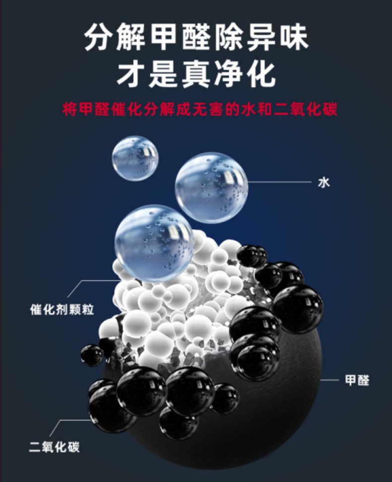 不需要光照、无二次污染、寿命长、使用方便、无需更换、甲醛净化效率高,环保安全无二次污染,适合有孩家庭。活性锰是一种金属氧化物的固体颗粒,自身不会挥发有害物质,对自然界无害,不存在甲醛污染物解吸、微生物滋生、二次污染的问题。