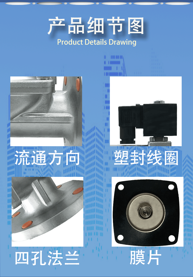 动作方式:多为直动式或分步直动式,可零压力启动,适用于水、油、气、弱腐蚀性介质。
