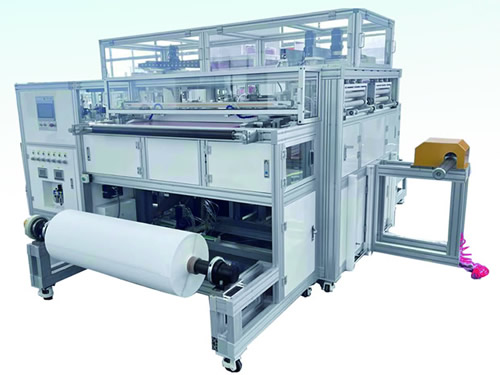 5.自动放卷导布,自动焊接:折叠膜片与导布组合焊接(可自由选择开启,关闭)。
