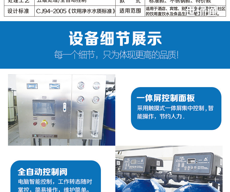 1吨全自动水处理设备饮用水纯净水设备反渗透ro净水器